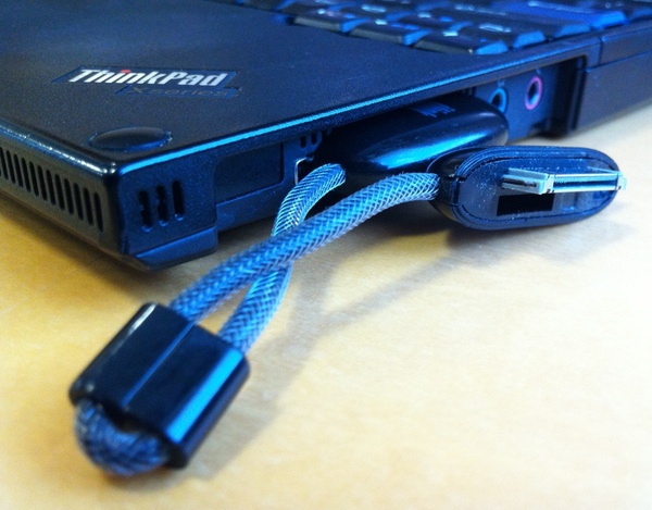 以前買った「とてもコンパクトなiPhone接続ケーブル(100円玉サイズのiPhone接続ケーブル)」がとても便利です。